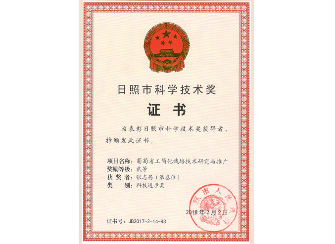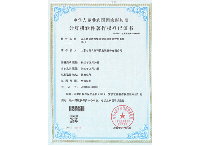 山東志昌農業科技發展股份有限公司自1984年創業至今已有四十年的發展歷程,是中國最早從事葡萄種苗研究的企業之一,主要從事葡萄等果樹分子生物育種、種苗繁育、產業規劃設計、技術研發與推廣、果品生產與加工、種苗出口、農業觀光旅游項目開發、農業標準編制的智慧農業高科技企業。公司通過了國家級高新技術企業認證、ISO9001國際質量管理體系認證,是“新四板”掛牌企業、中國產學研合作創新示范企業、山東省瞪羚企業、山東省新型研發機構、山東省“專精特新”中小企業、現代農業產業化龍頭企業。
